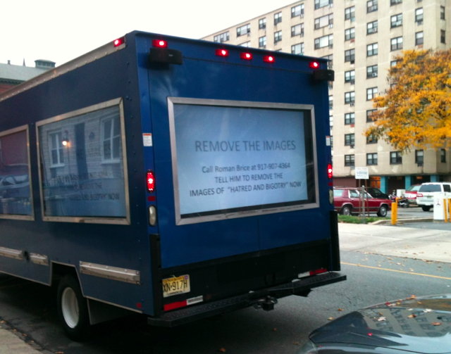 Called by one first hand observer the “Mason Shuttle,” there’s concern yet another front in the voter fraud effort suspected with numerous alleged instances already retold by residents including one commenter on MSV just today. (See Grist for the Mill below.) Since there’s no voter identification of any kind required when voting, no one can be sure who is exactly being sent out in the shuttle to the Hudson County Board of Elections to vote in the Hoboken election. The major concern is that another front has been opened in an organized large scale voter fraud operation. The “voters” appear to be congregating outside a candidate’s office space on Jefferson Street. MSV is working on this voter fraud story among others. Is there a =&0=& in da house?| The Nazi Truck seen above at the midway point of its five trips to Hoboken last November has been replaced with what one observer believes is a “Beth Mason Shuttle.” This one is ferrying suspect voters to the Hudson County Board of Elections. |