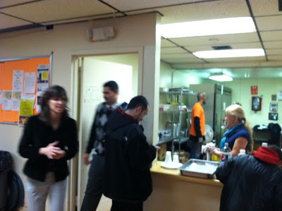 | Mayor Dawn Zimmer (l) at the Hoboken Thanksgiving dinner Tuesday in perpetual motion as always |