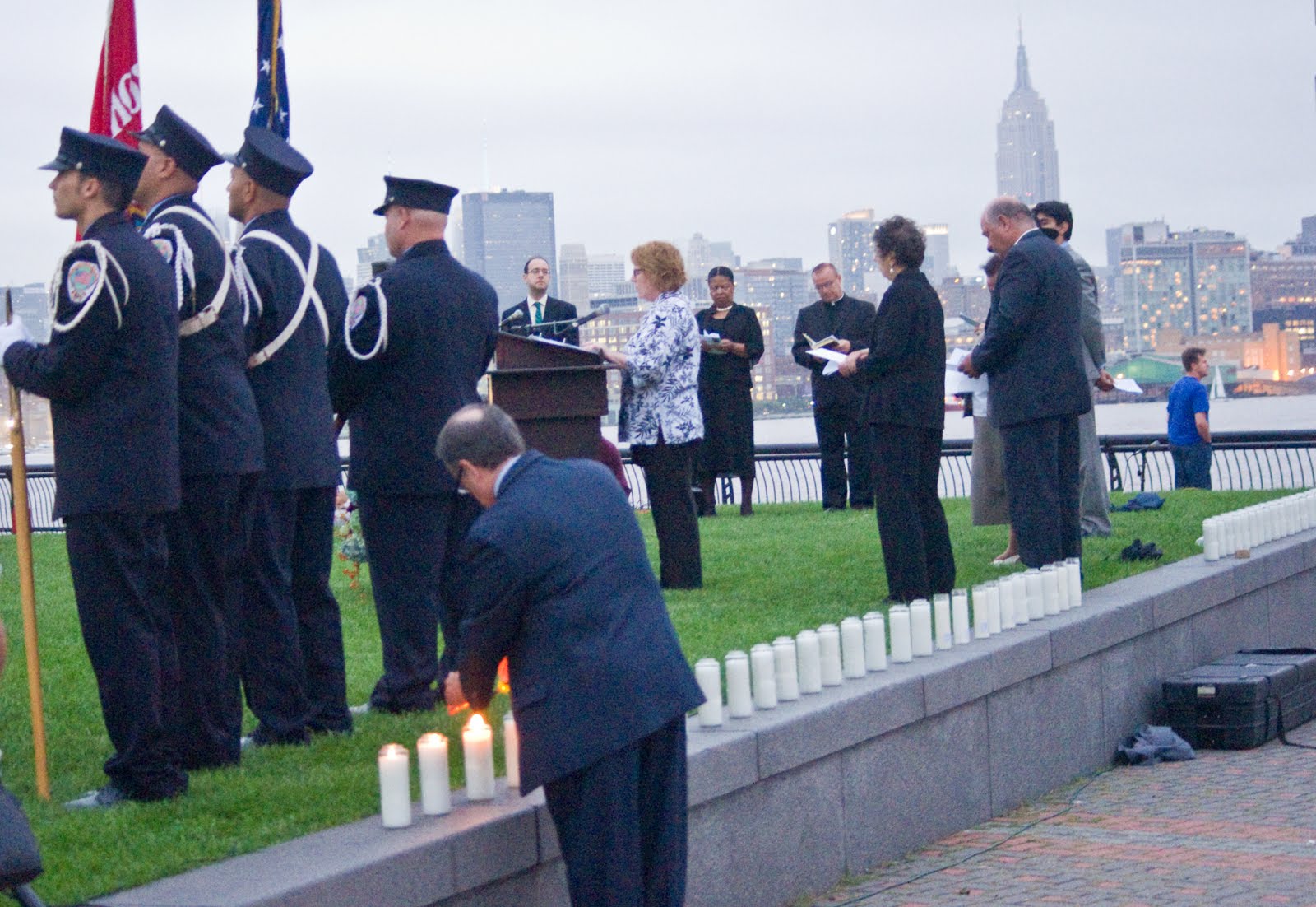 | As the reading of the names of Hoboken’s victims were read, the candles were lit |
