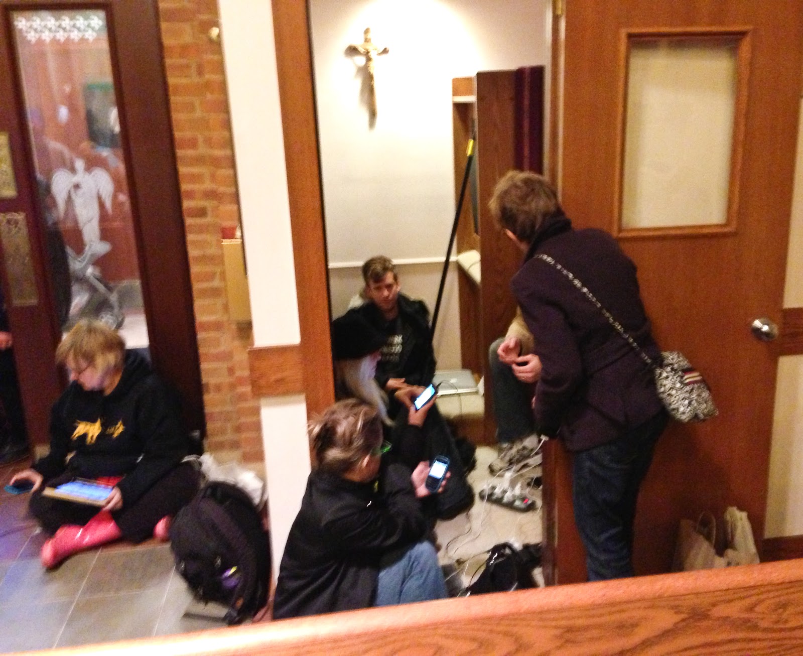 Makeshift confessional – Saints Peter and Paul Church was an anchor on Hudson Street providing respite, charging for devices and one of the key shelters for people after Hurricane Sandy.