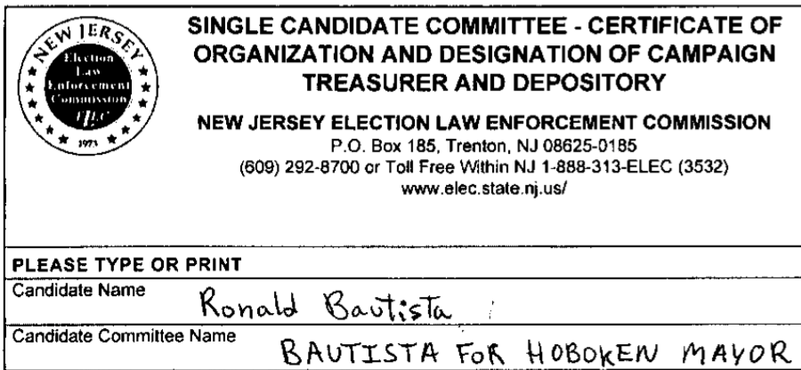 Another entry into the Hoboken mayoral sweepstakes is official. Well at least the initial paperwork is official.