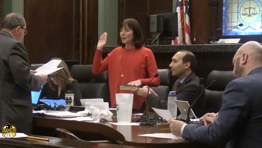 Not only is the councilwoman serving in a back-to-back role again, it’s her fifth time selected by her council colleagues in her eight plus years on the City Council.Councilwoman Jen Giattino being sworn-in last night for the fifth time as City Council President. photo courtesy the Hudson County View |