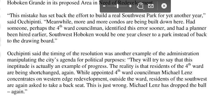 Nothing is more telling in Occhipinti’s performance than the fact they can’t even edit something to mislead readers, a Hoboken411 specialty. Instead it’s been an onslaught of we hate Mike Lenz and the progress of Hoboken under Mayor Zimmer 24×7.
