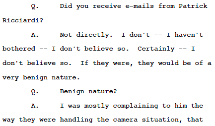Bajardi offered a variety of reasons on the mayor’s emails finding their way into his email account before and during the trial. In a deposition last July, Bajardi, in reply to a question from Defense counsel Kerry Flowers if he had received the mayor’s stolen emails from Patrick Ricciardi said “not directly” and if he did the emails were “of a very benign nature.” He added that he’d never looked at the information sent to him by Perry Klaussen of Hoboken411. The contradictory answers would be supplemented with Bajardi declaring he had never seen them the weekend of February 27th when they were sent with his approval from Hoboken411’s Perry Klaussen.