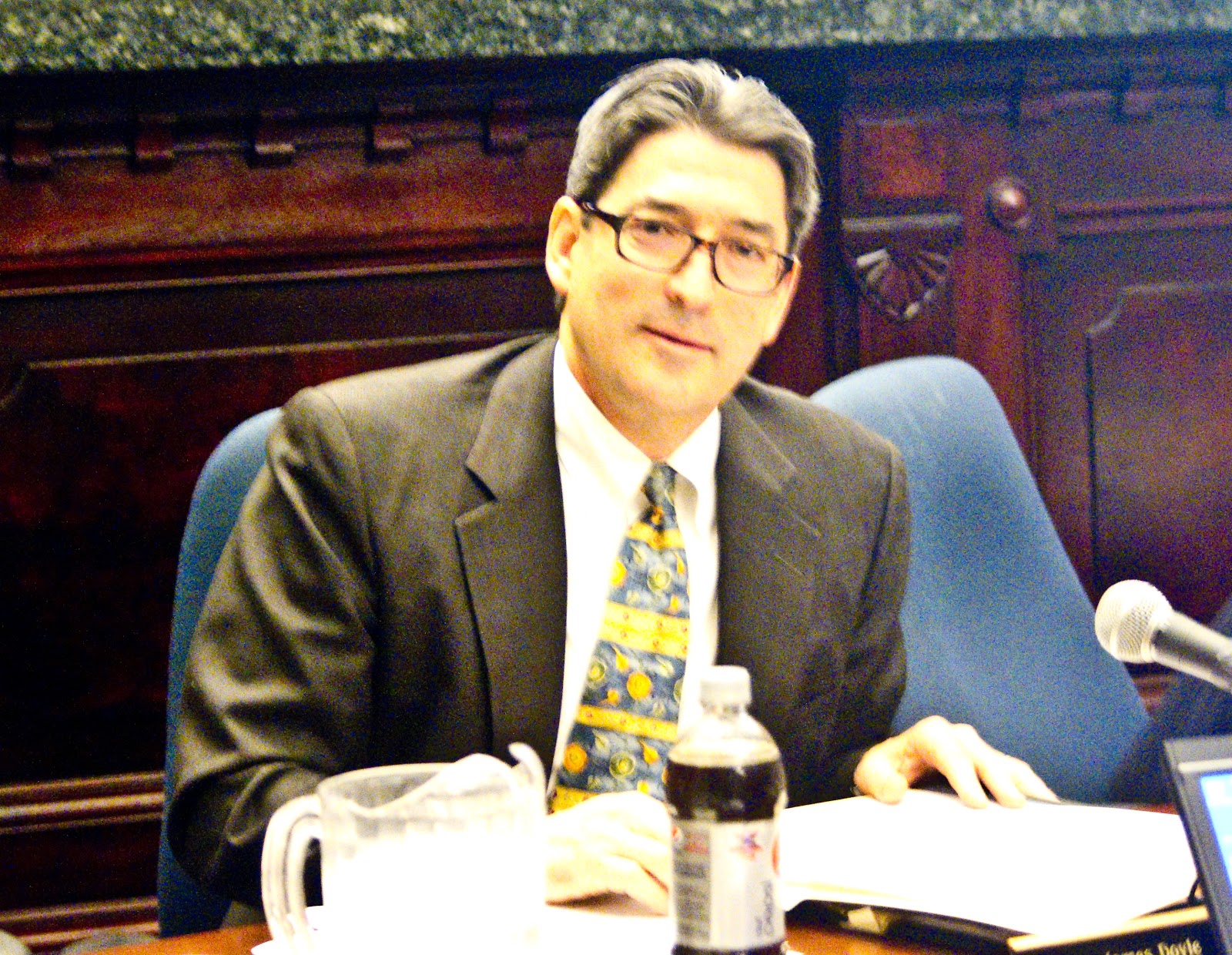 | Councilman Jim Doyle last month in the Hoboken City Council. The Mason funded lawsuit to stop his appointment is being heard today. |