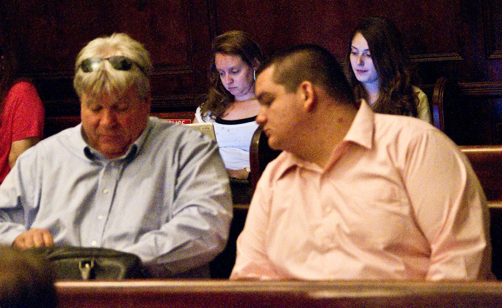 | Beth Mason paid political operative Matt Calicchio (r) at the City Council meeting earlier this month. |
