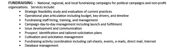 | The Cratos Group describes their fundraising capability. It doesn’t say they are in business of giving money to politicians or their “friends.” Why would someone from that company do so? |