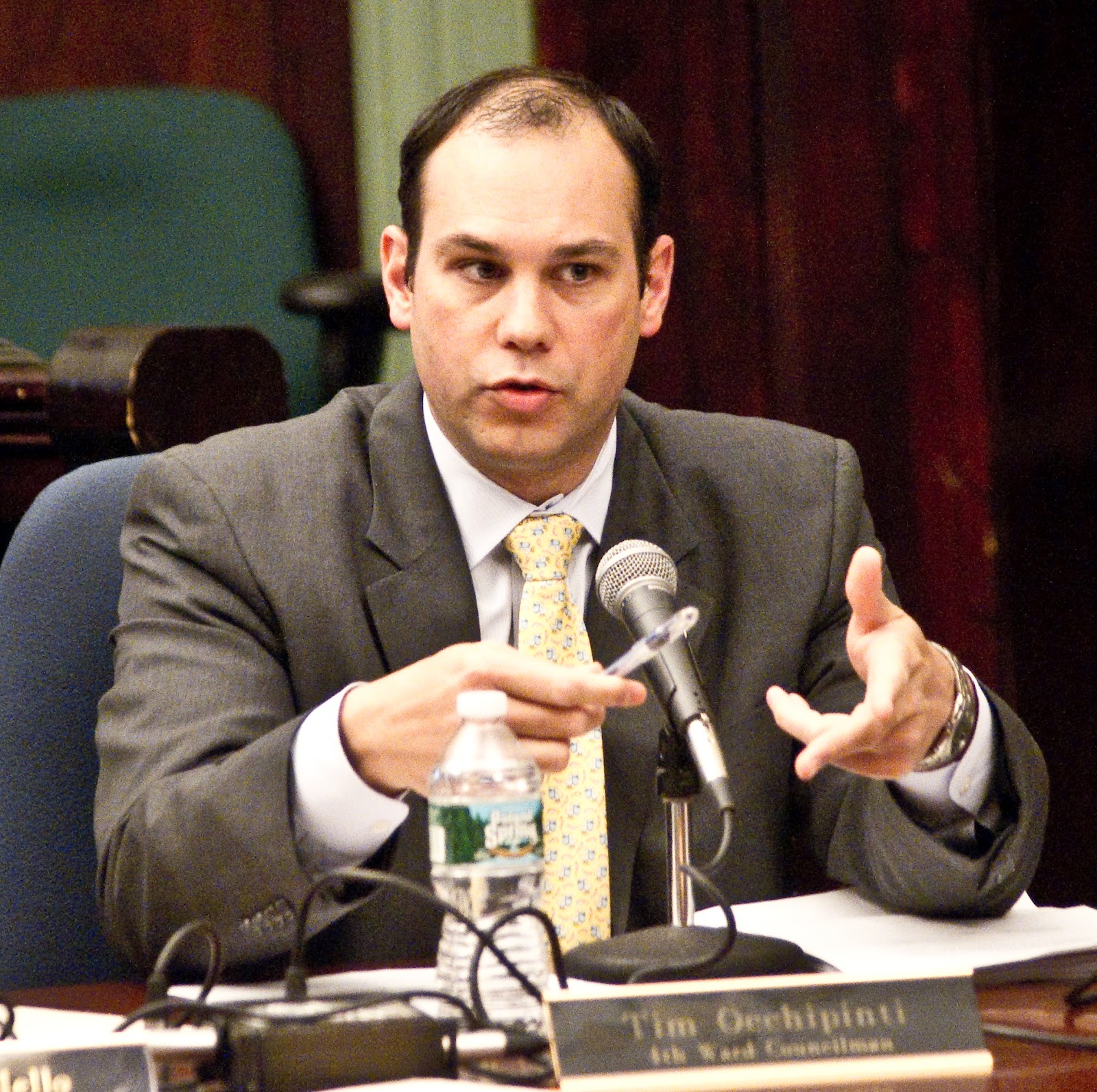 | Tim “Cammarano lite” Occhipinti makes a point at last week’s meeting. His fundraiser saw only ten people in attendance a day earlier but people are saying Occhipinti is already walking around like he’s the Old Guard mayoral candidate. Based on Occhipinti’s bad behavior at last Wednesday’s council meeting, he is buying into his own hype which is a travesty and a Cryan shame. |