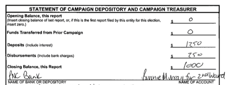 | Portion of Bonnie Murray’s actual filed ELEC report. |