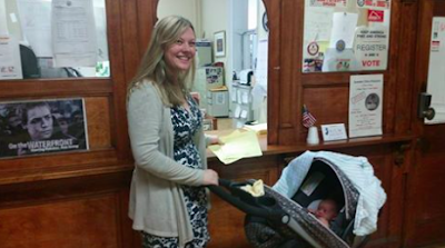 | Fourth ward candidate Dana Wefer today at City Hall submits her petitions with her newest family addition: a baby girl. |