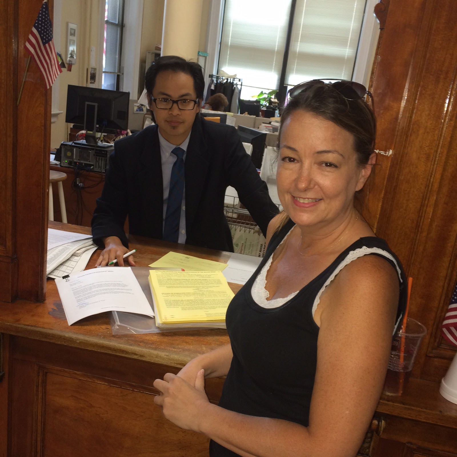 | As promised, Tiffanie Fisher seen here at City Hall filed to be a candidate for the second ward council seat in this November’s Hoboken election. |