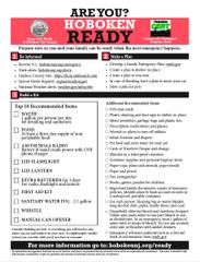 September is National Preparedness Month, and www.ready.gov highlights resources and best practices to prepare you and your family for Hurricane season. Also useful are the “Hoboken Ready” resources that highlight recommendations to prepare yourself,and your building, for a natural disaster.