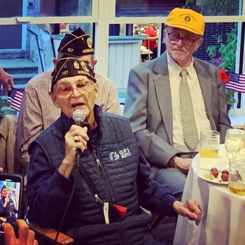Shifting gears a little… thank you to everyone who helped support providing six homes for homeless veterans in Hoboken. The event Saturday night at the new American Legion Post 107 was a huge success – they raised almost $50,000! They still have another $50,000 to go to finish the project so if you are interested in supporting them email me or Commander John Carey at AmericanLegion107NJ@aol.com. The biggest moment of the night though was when Hoboken’s treasure Vinny Wassman, who at 94 is Hoboken’s oldest veteran, led the crowd in a spirited rendition of Grand Old Flag. If you don’t know Vinny, you should. Click the picture below of Vinny (and beloved Charlie who runs Bingo at the Senior Center) to see…