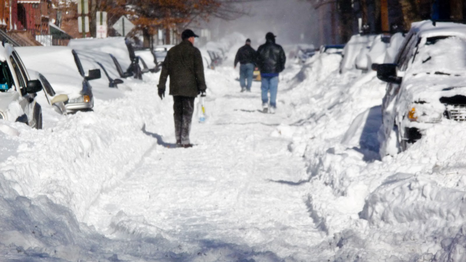 | But with sidewalks not consistently shoveled, people took to walking in the middle of the street as here on upper Garden. Hey get out there and clear your sidewalk! Teams of young people are out looking for work too. (Click any photo to enlarge.) |