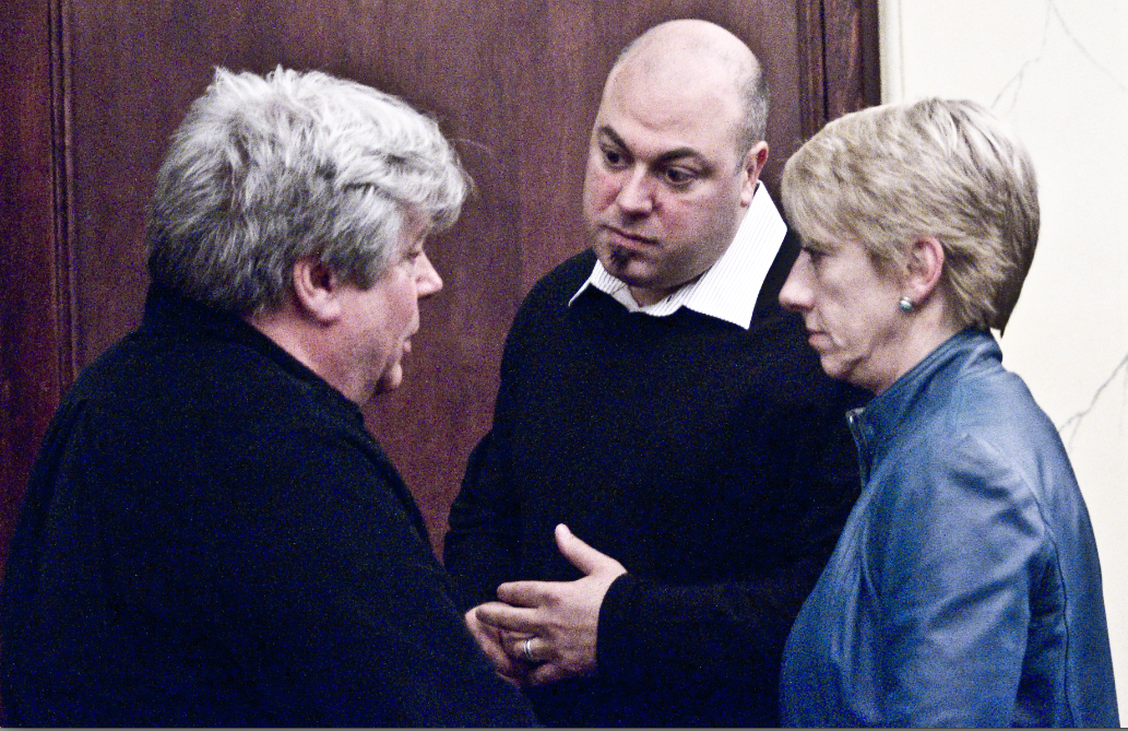 Barry “Not Perry” Brendel has been a frequenter of council and other Hoboken meetings and is pictured above speaking to Councilwoman Beth Mason as Councilman Michael Russo looks on at the Sunday Special Meeting of the City Council back in October 2011where the Mason sabotage to the hospital sale finally wilted when Tim Occhipinti bailed on the attempted snuffing of the century old institution.