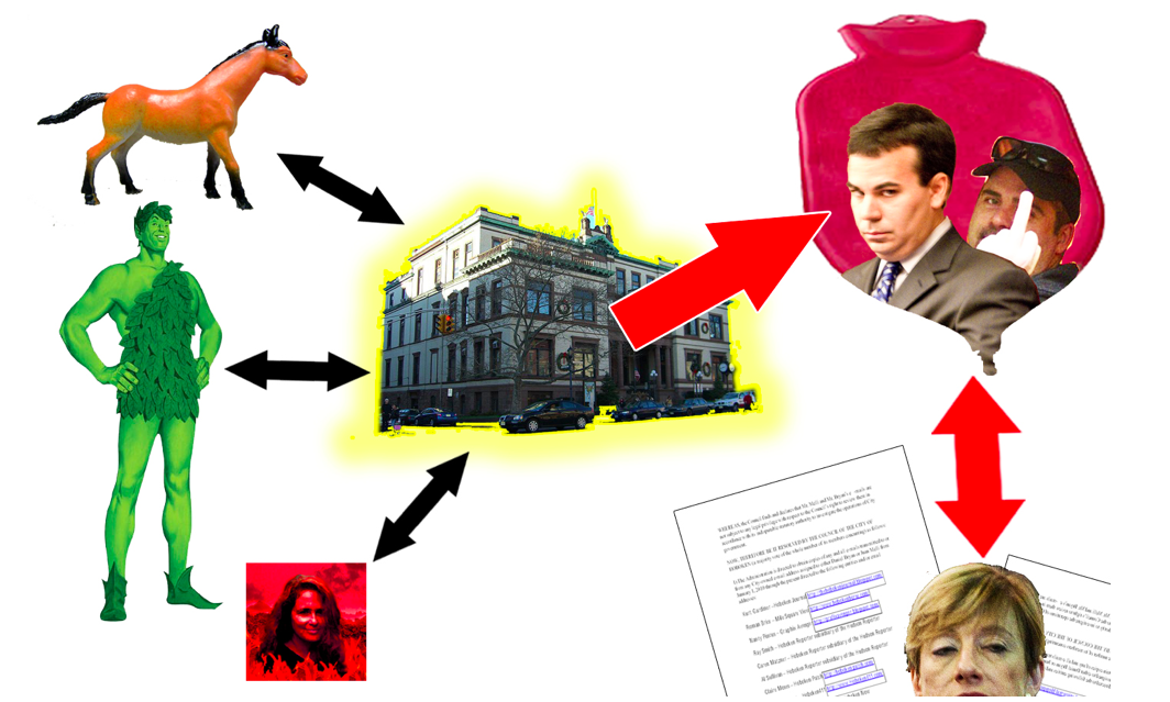Our favorite Hoboken political satirist Grafix Avenger, who can decimate more egos with the least words and brilliant graphics is taking stock of the current City Hall investigation – what she dubs the Data Theft Ring (DTR) and theorizes with a focus of a laser on one potential group of suspects who had the means, motivation, and money to hijack City Hall’s confidential servers for political reasons.