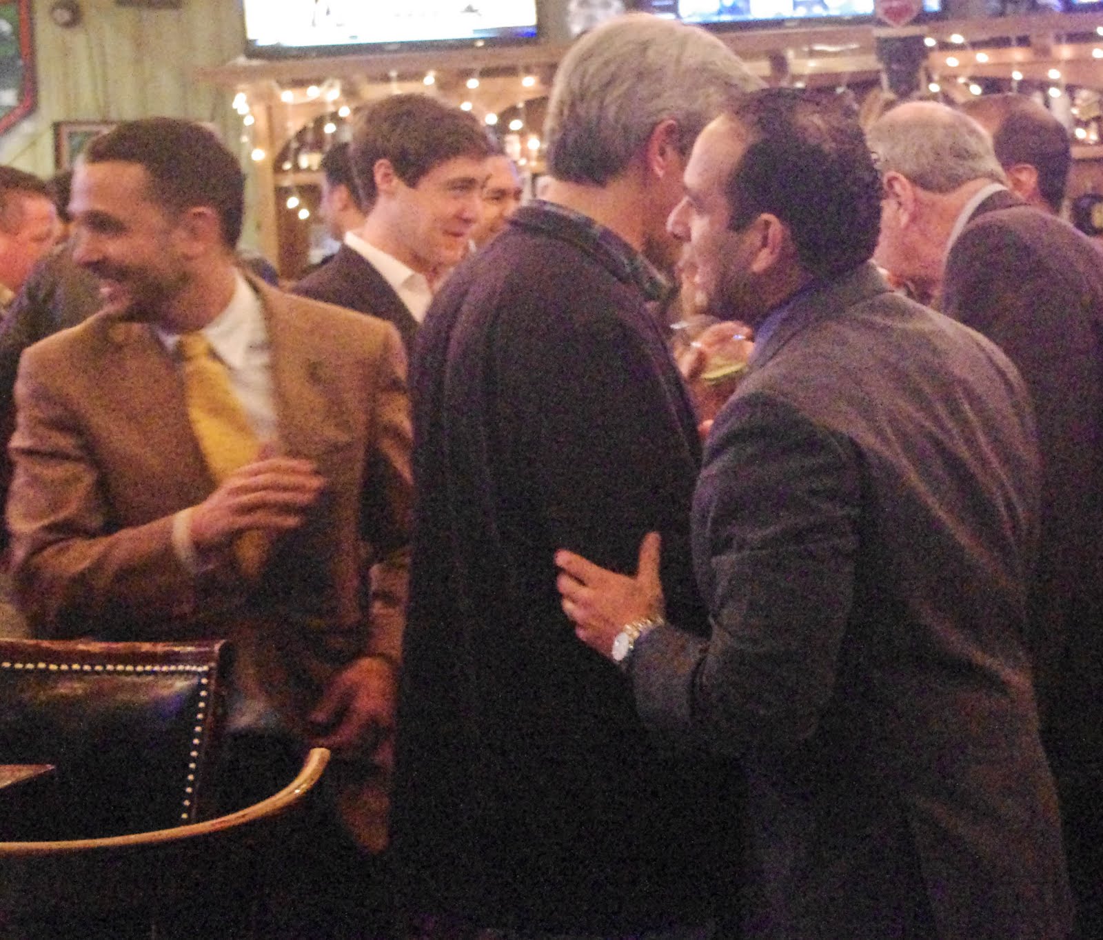 | Carmelo Garcia (r) presses the flesh at Councilman Mike DeFusco’s fundraiser last month. He’s said to be insistent he be on any council at-large ticket should the junior councilman get airborne with a mayoral bid. |