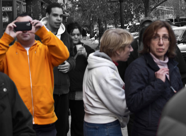 Beth Mason attempts to cower behind Ines Garcia Keim (r ) as James “FinBoy” Barracato returned to the scene of a repeated assault against MSV in broad daylight on Washington and 12th St. outside the Mason Civic Association. The Mason declared “business partner” returned to the street from the the Mason “charity” office which fronted as the HQ of the controversial 2012 Move Forward Nazi Truck BoE campaign. |