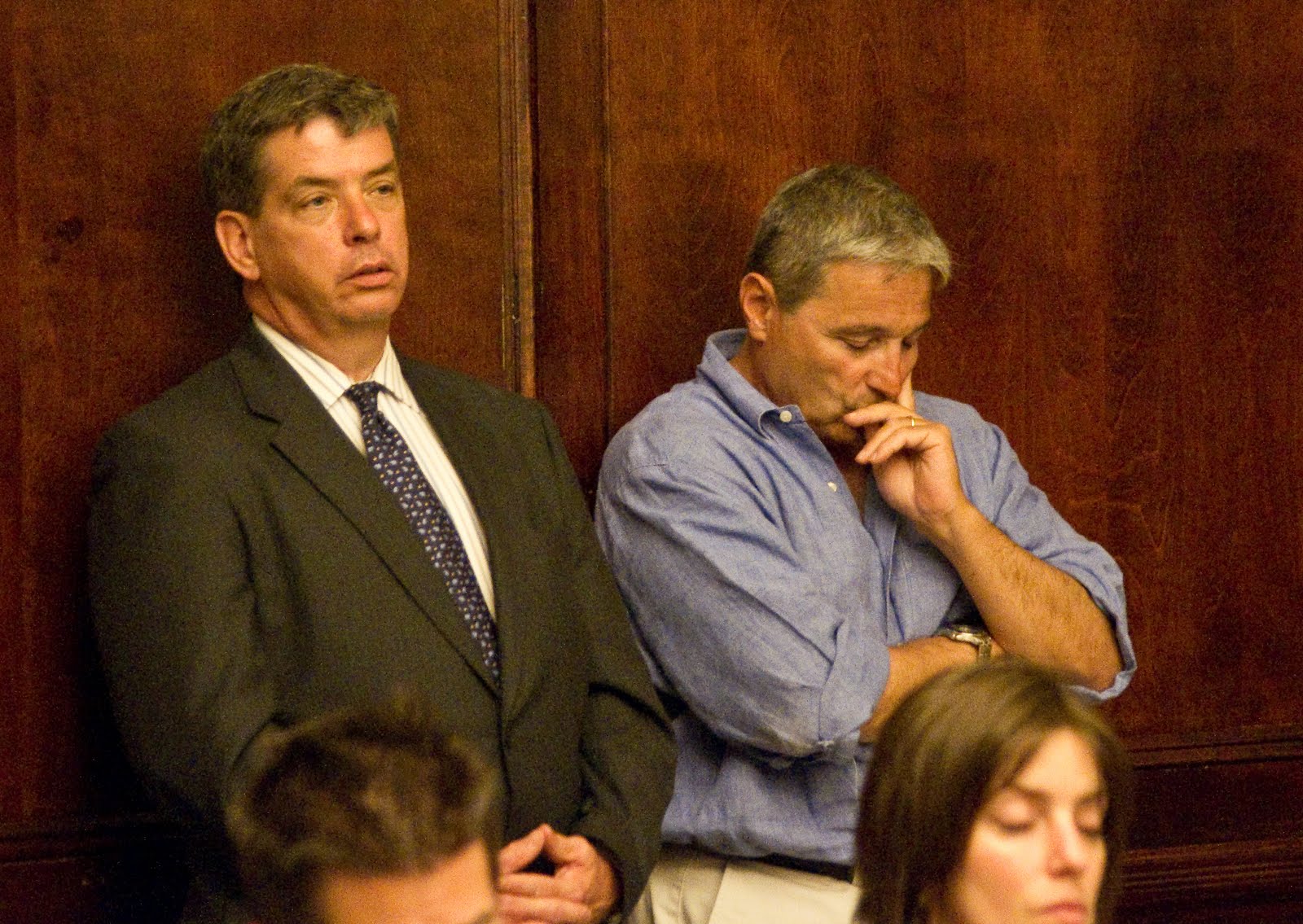 Dino Bogdanos right at Tuesday night’s special meeting with an unidentified gentleman to his right.