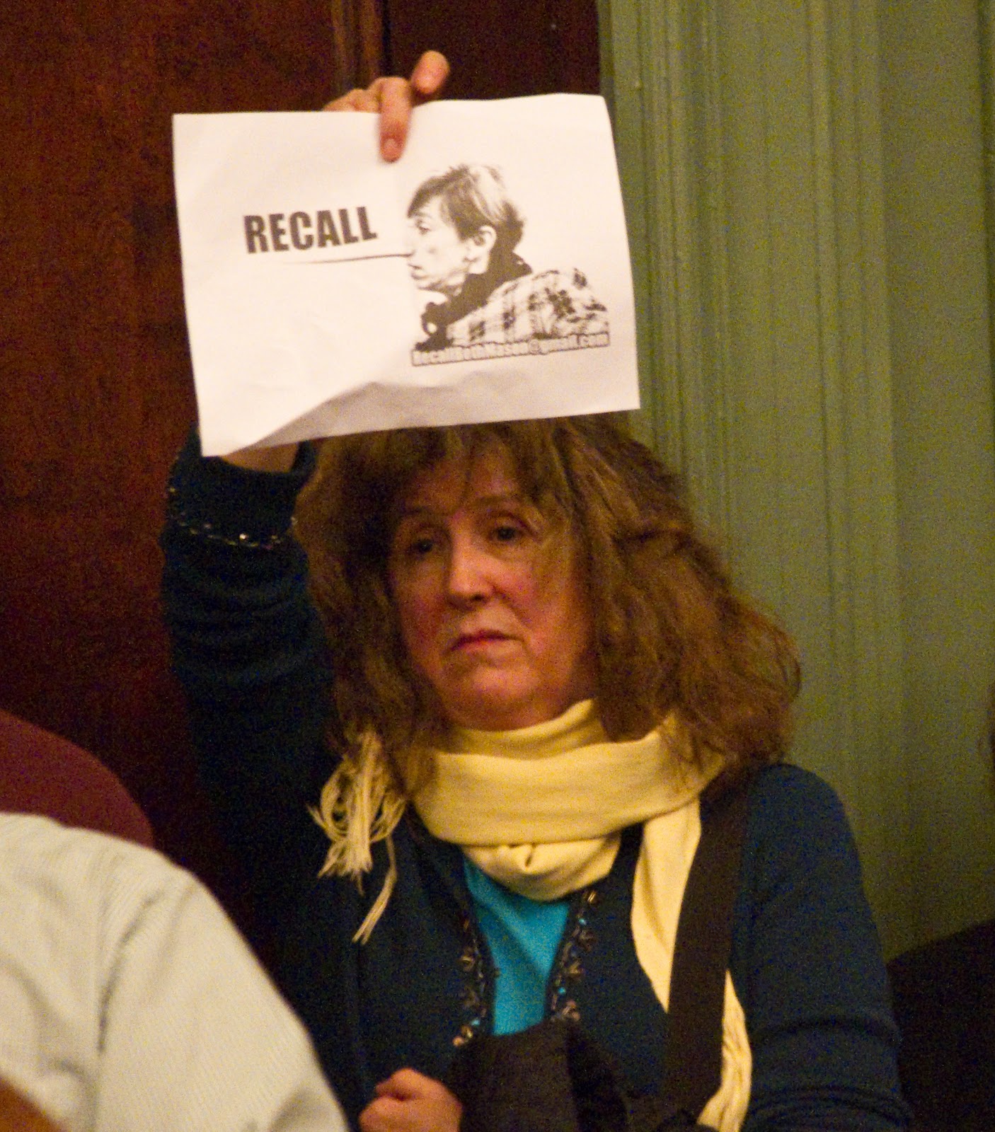 As the audience shows restraint for more of Beth Mason’s fiction as her political commentary winds down, members of the audience risk ejection when a spontaneous reaction to one too many lies leads to an outburst of catcalls including “liar” promptly followed by a chant for her recall.