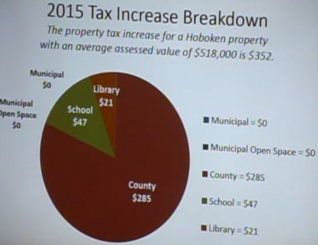 Last night a short presentation illustrated the historical tax slaughter wielded by Hudson County on Hoboken.