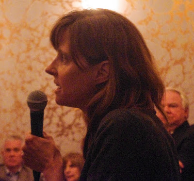 | Mayor Dawn Zimmer addresses the huge crowd at Porter Collins last night. |