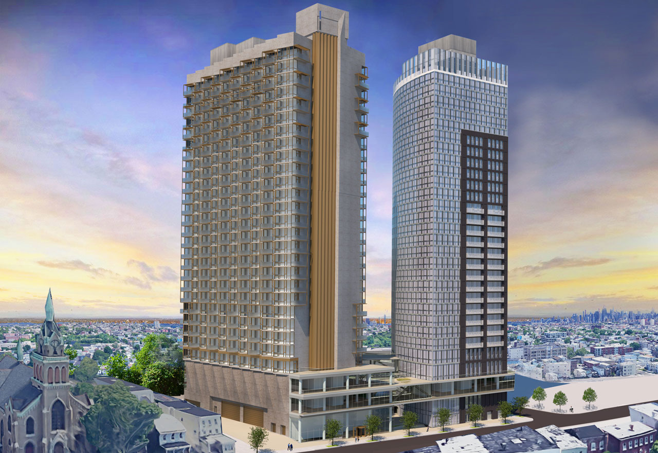 Lackawanna Tower in the left distance may be a buried landmark on the horizon if two Ravi Bhalla towers rise over downtown Hoboken as depicted here. It’s the legacy of special interest power Ravi Bhalla represents entering Election Day. |