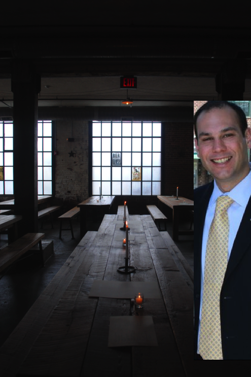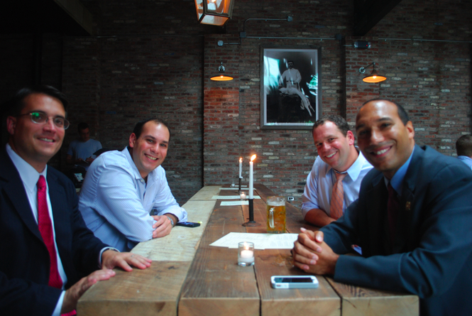 | Tim Occhipinti at the Pilsner Haus opening rear left with Assemblyman Ruben Ramos right |