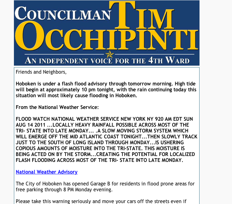 | Here’s part of the email Tim made for Hoboken residents |