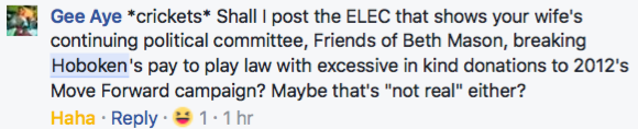 This immediately followed with Ines and John Keim heading for the hills as no answer was forthcoming. For good measure, Grafix Avenger pointed out the lack of response with additional background on the political doings in Hoboken of Ines and John Keim re: the suspect activities hosting the continuing political committee, “Friends of Beth Mason.”
