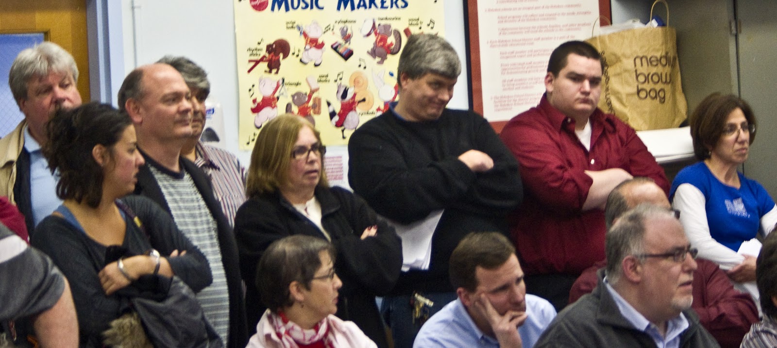 | John Keim (l) stands next to Michele Russo on Old Guard Row with Matt Calicchio & Ines Garcia Keim last February. They came out to fight against BoE elections in November. The measure passed leading to higher turnout as predicted here (and as they feared) last fall. |