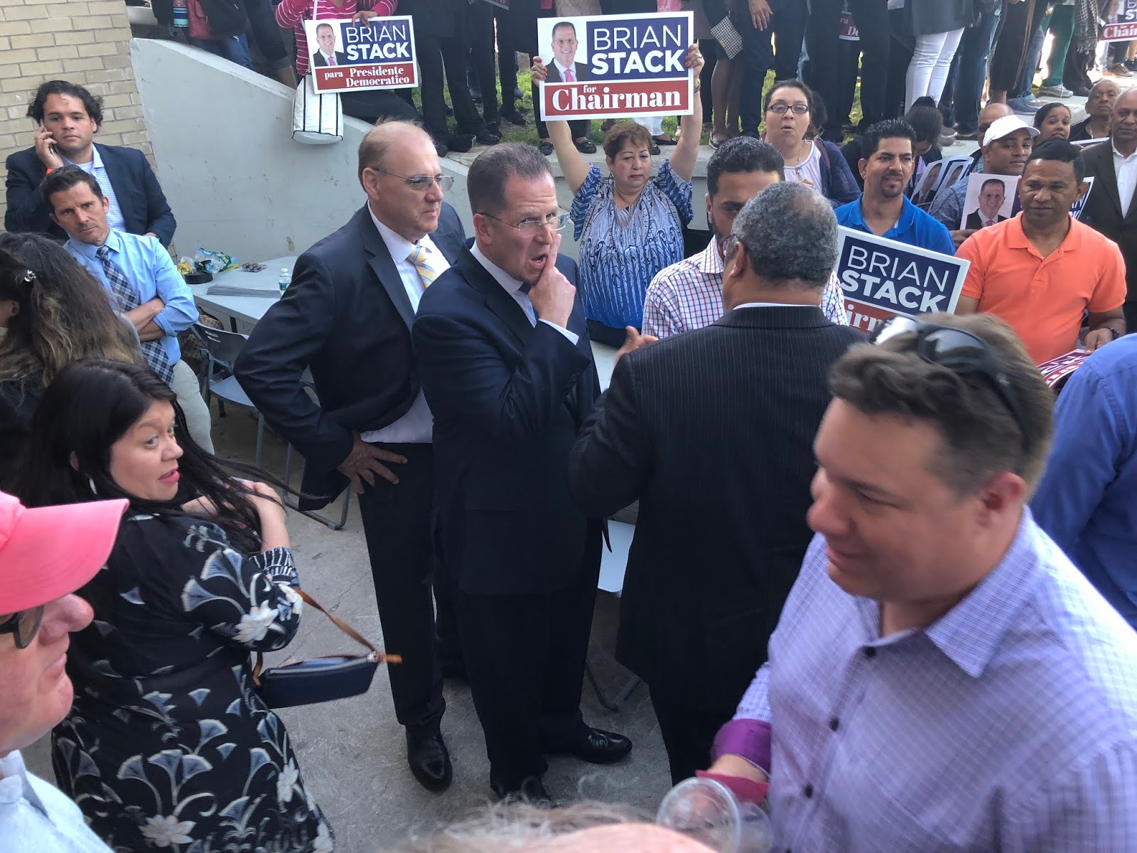 Union City Mayor Brian Stack has brought down dozens of his supporters with astroturf signs reading, “Brian Stack for Chairman” in English and Spanish.