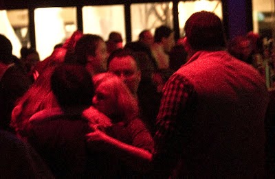 Lane Bajardi and Michele Russo hug it out at a political party on Washington Street in January 2011. |