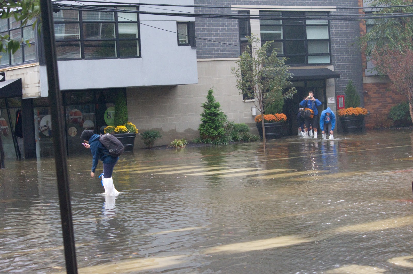 | People attempting to escape from Madison and 8th. Madison is a mess and seeing higher waters than ever. |