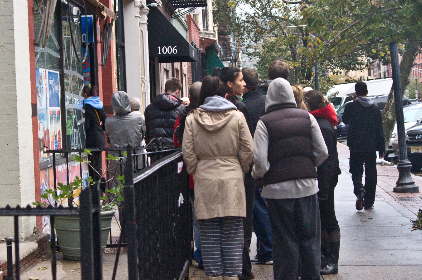 | Halp, halp we’re thirsty. People lining up at Yash Liquor on Washington to get liquid refreshments. |