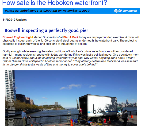 Hoboken411 went all out taking the less than professional assessment last fall by Boswell engineers and went with the on the fly conspiracy putting out its usual “I hate Zimmer,” screed:
