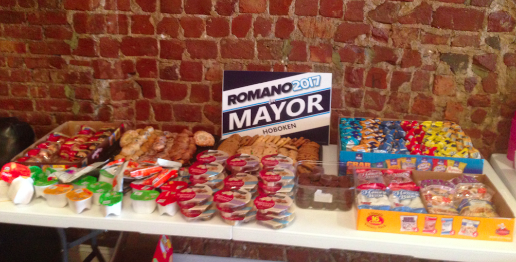 | The breakfast spread last weekend at the Romano for Mayor headquarters. The office was staffed up for weekend campaign duty. They won’t be running low on fuel. |