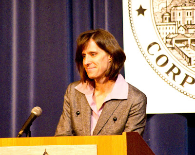 | Mayor Dawn Zimmer pauses during an interruption of applause at the SOTC address. Mike Russo didn’t like the speech and offers some rather shallow criticisms in his re-edited rebuttal. |
