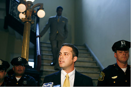 | Heyday: A week after arrest, Cammarano held a press conference with that familiar visage scowling at Hoboken. |
