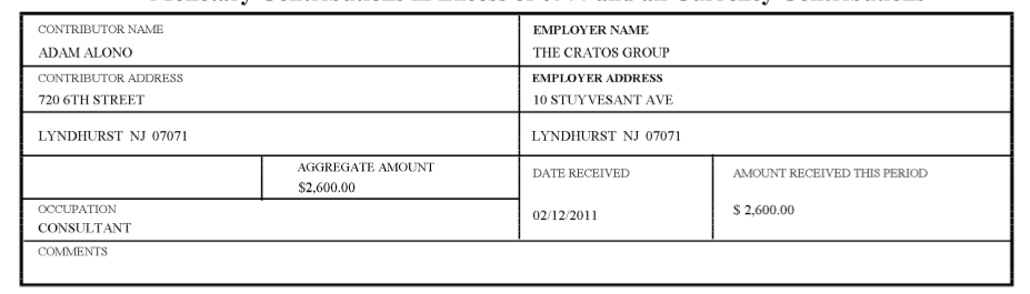 Now in Occhipinti’s latest NJ ELEC campaign finance report, the same firm employed by Councilwoman Beth Mason is a contibutor not a recipient for services rendered. This time Tim Occhipinti gets the whopping maximum from its principal, a full $2,600.