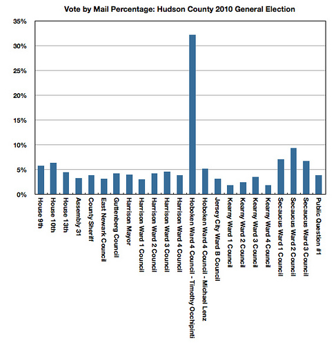 Take a gander at this graphic, then tell me you don’t see red flags. You’re looking at a chart of the vote-by-mail percentages for the Hudson County general election. Compare Occhipinti’s absentee voter percentages with other Hudson races, and with Lenz’s race: