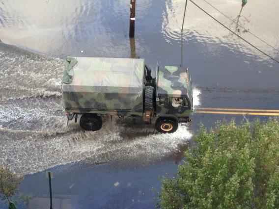 National Guard trucks will be going through flooded streets to evacuate those with true medical emergencies first. Get their attention; don’t go outside (in the water).