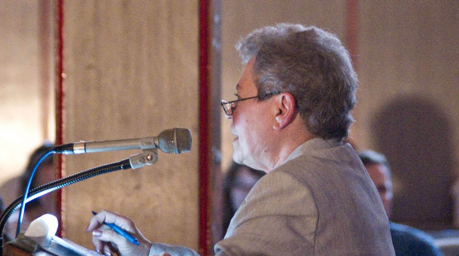 | Virginia Treacy speaking at the hospital public hearing at OLG. Back then a million dollar loss “was nothing.” She now calls the Hospital Authority “morally bankrupt” for its management structure keeping the union from obtaining monies owed to it. |