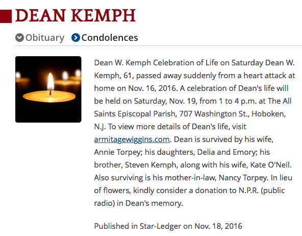 It is with a heavy heart many of us learned today of the sudden passing of our friend Dean Kemph.