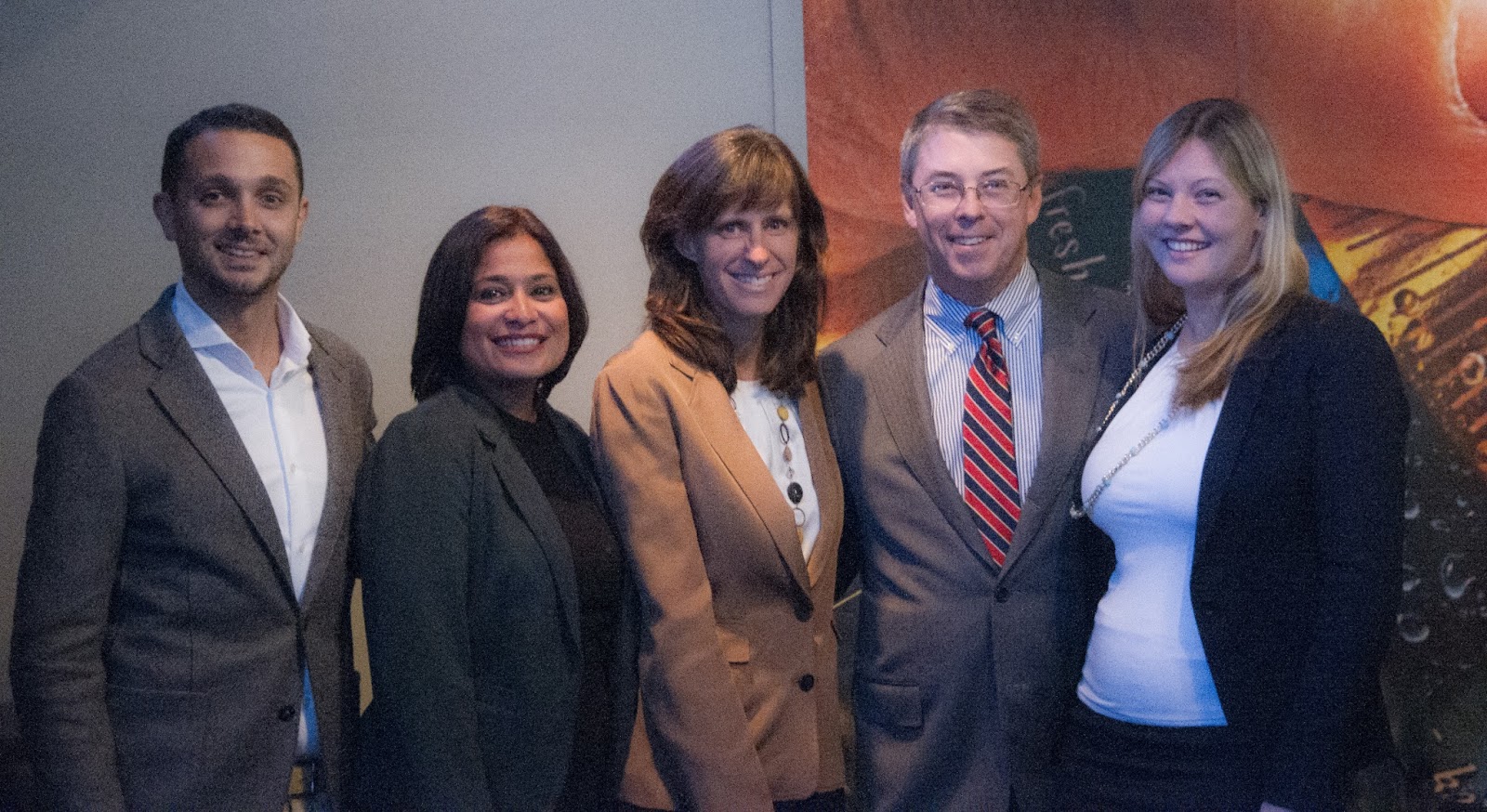 | Hoboken Council President Ravi Bhalla expressed his support for Tiffanie Fisher’s City Council run and appears with BoE trustee Tom Kelupfel and Tiffanie Fisher who is surrounded by Kleupfel’s running mates on the BoE, Addys Velez (l) and Sheillah Dallara. |