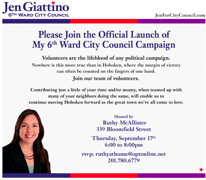In a vote for eminent domain to allow the City to purchase the last six contiguous acres in Hoboken, voting in favor: Councilmembers: Jen Giattino, Peter Cunningham, Dave Mello, Jim Doyle, Tim Occhipinti and Council President Ravi Bhalla.