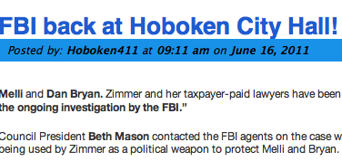 Beth’s Mason political apparatus of Hoboken411 now claims the FBI criminal investigation is a “political weapon” to protect two mayoral staffers.  MSV is sure the FBI will be impressed.  Not!