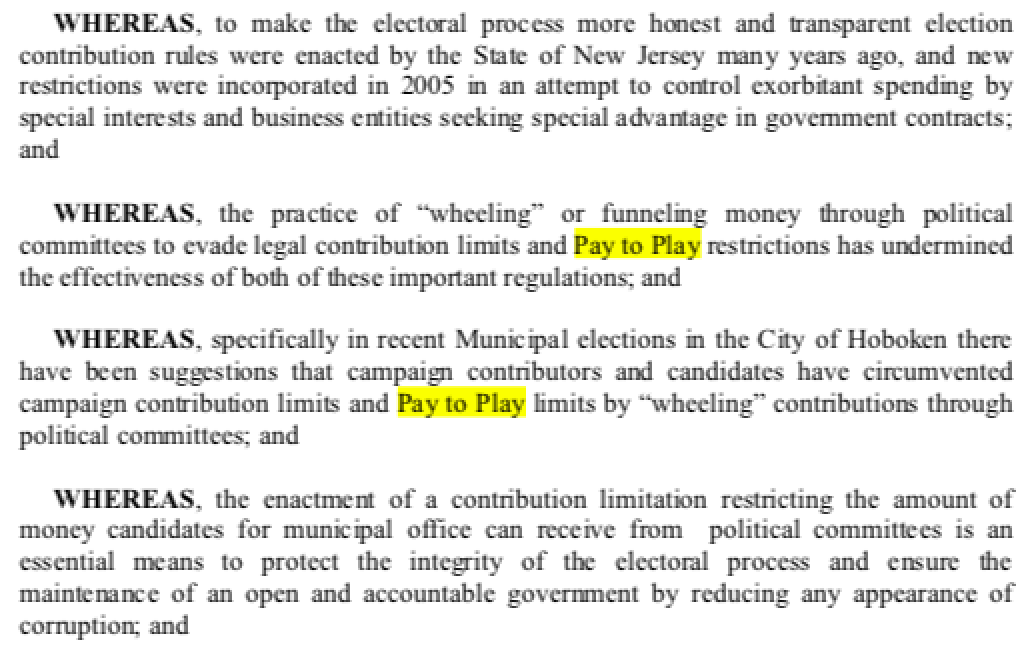 | Actual language from Hoboken’s 2011 Pay to Play ordinance on wheeling. |