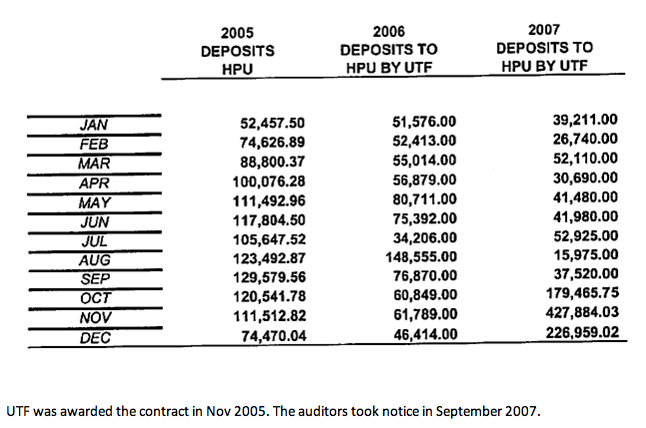 | This chart illustrates the looting going on month by month in the Hoboken Parking Utility under John Corea. Note that November and December 2007 were months where repayments were made after the discovery was made and an agreement to pay back part of the missing funds. |