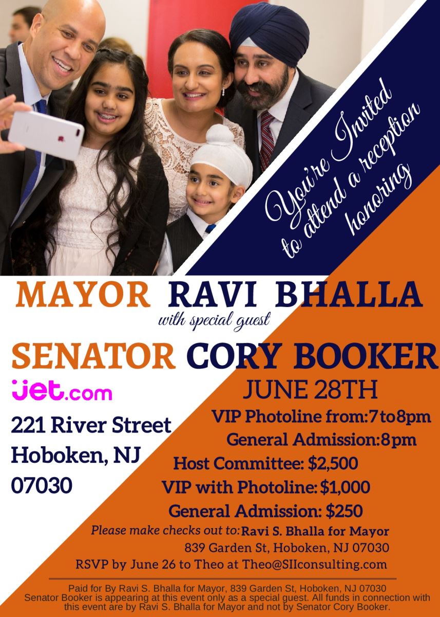 Ravi Bhalla fundraiser sees headliner Senator Cory Booker bail